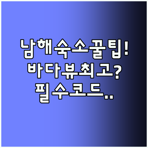숙소명 주요 특징 및 매력 포인트 예약/제휴 링크 남해 여우비펜션 (Namhae Yeoubi Pension) • 전 객실 바다 전망 • 프라이빗 바비큐(BBQ) 시설 • 주차장 완비 • 도심 접근성 우수 • 창선면 관광명소 인접 바로 예약하기 남해 스포츠파크 호텔 (Namhae Sportspark Hotel) • 베스트셀러 숙소 • 친환경 해수 수영장 • 키즈 클럽 운영 • 24시간 프런트 … 더 읽기
